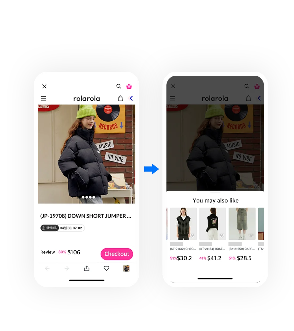 ZigZag used OMNICOMMERCE’s Visual Recommendations to analyze and recommend products to customers based on images, then built customized UI/UX. The company drives purchases using various recommendation methods, such as providing recommendations using the data of other customers who performed similar actions or by recommending similar items of the products the customer showed interest in.